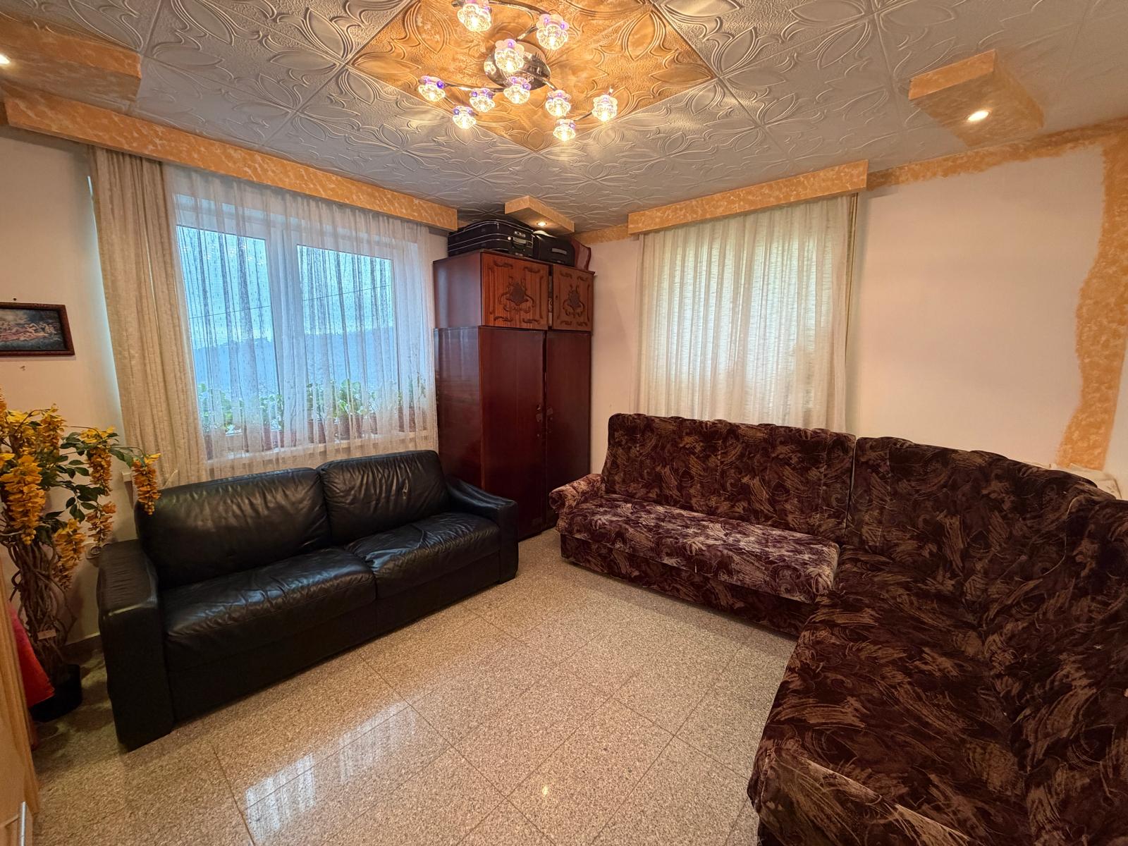 Casa dispune de 3 camere, baie, 2 holuri, pivnita si baie